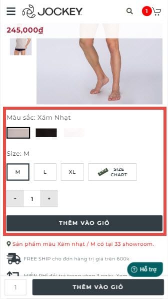 Kiểm tra thông tin về giá, chọn Màu & Size của sản phẩm. Sau đó chọn Thêm vào giỏ hàng.