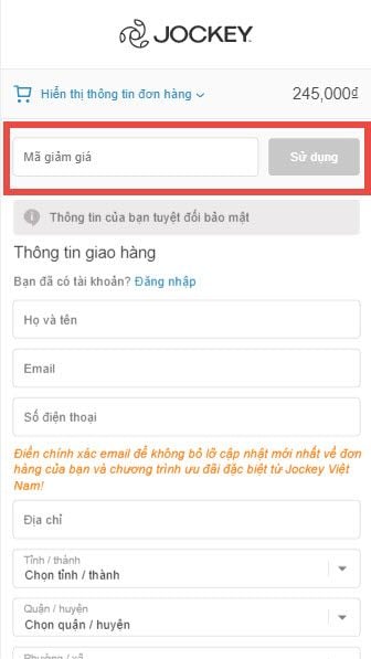 BƯỚC 3: Nhập Thông tin giao hàng và mã giảm giá (nếu có).