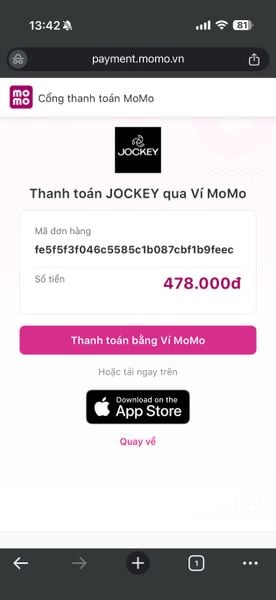 Sau khi bấm Hoàn tất đơn hàng, sẽ xuất hiện cổng thanh toán của MoMo và thanh toán