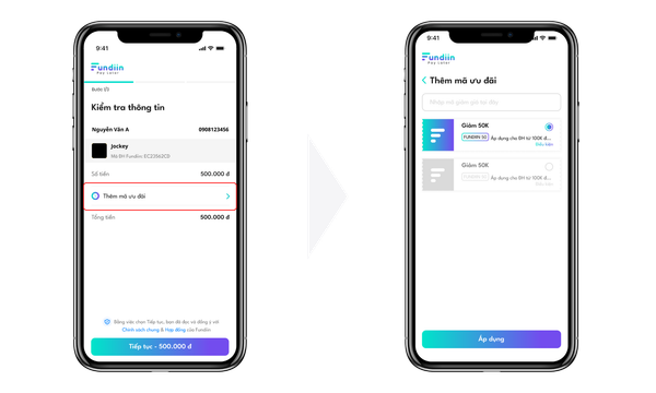 Cụ thể, sau khi áp dụng mã giảm giá (nếu có) tại giao diện thanh toán của website Jockey, khách hàng được phép sử dụng thêm mã ưu đãi tại giao diện thanh toán của Fundiin: